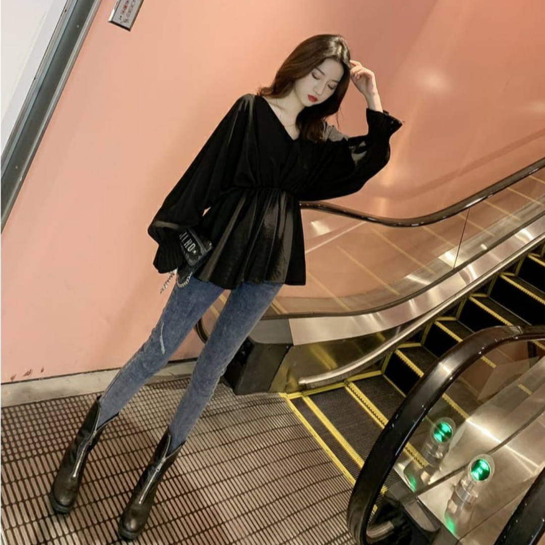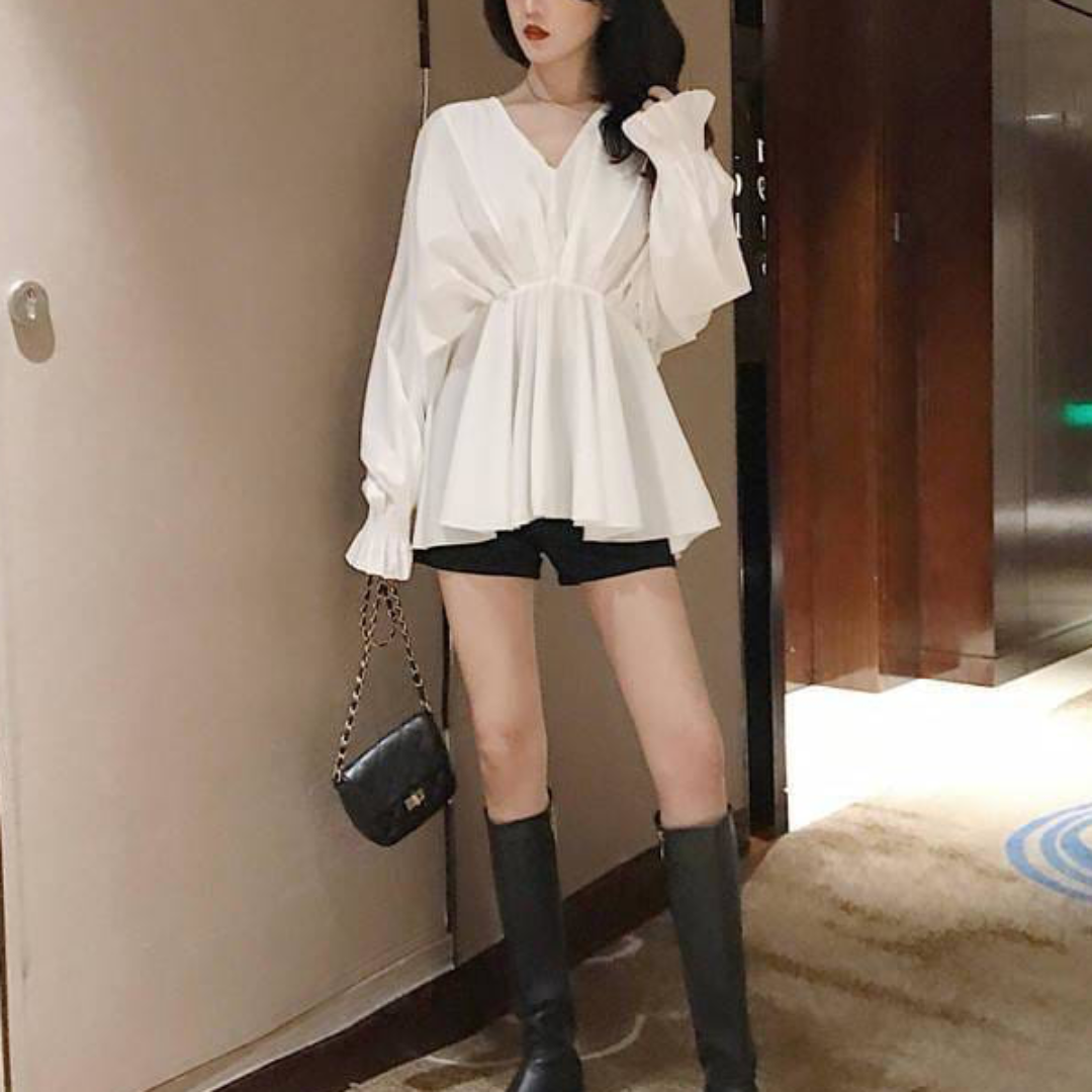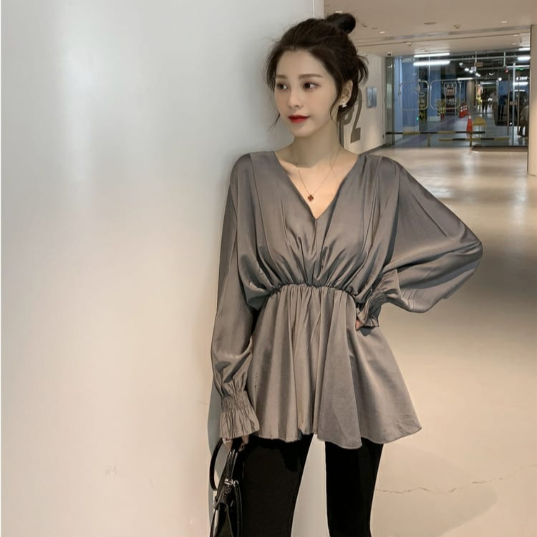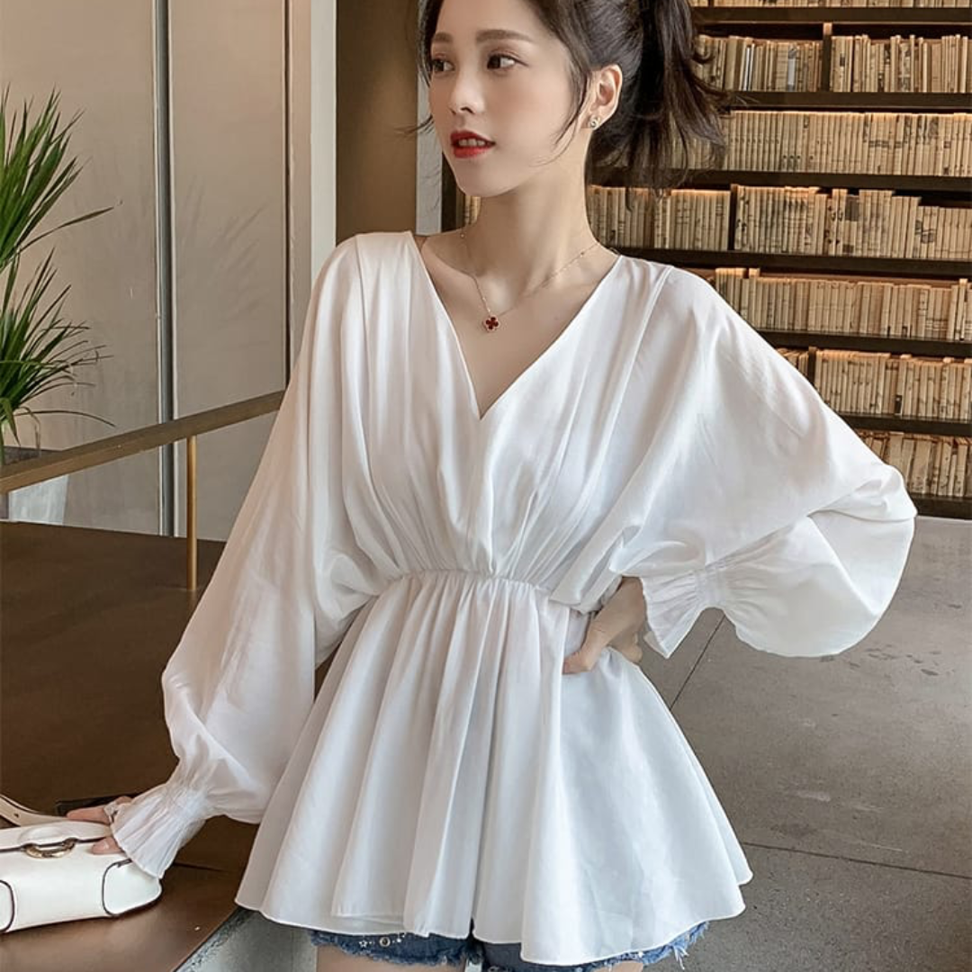 Cozy Korean Long Sleeve V-neck Peplum Butterfly Tops