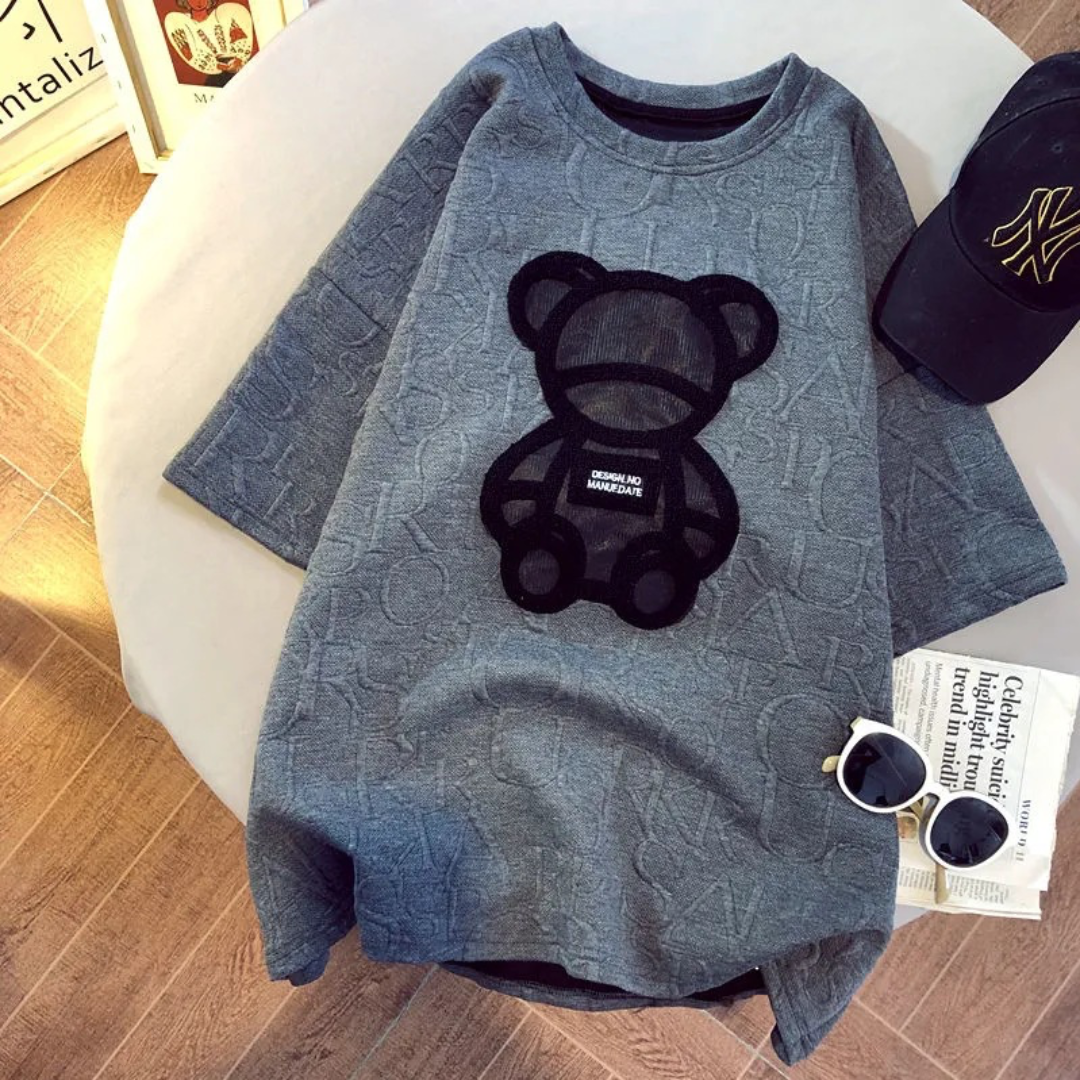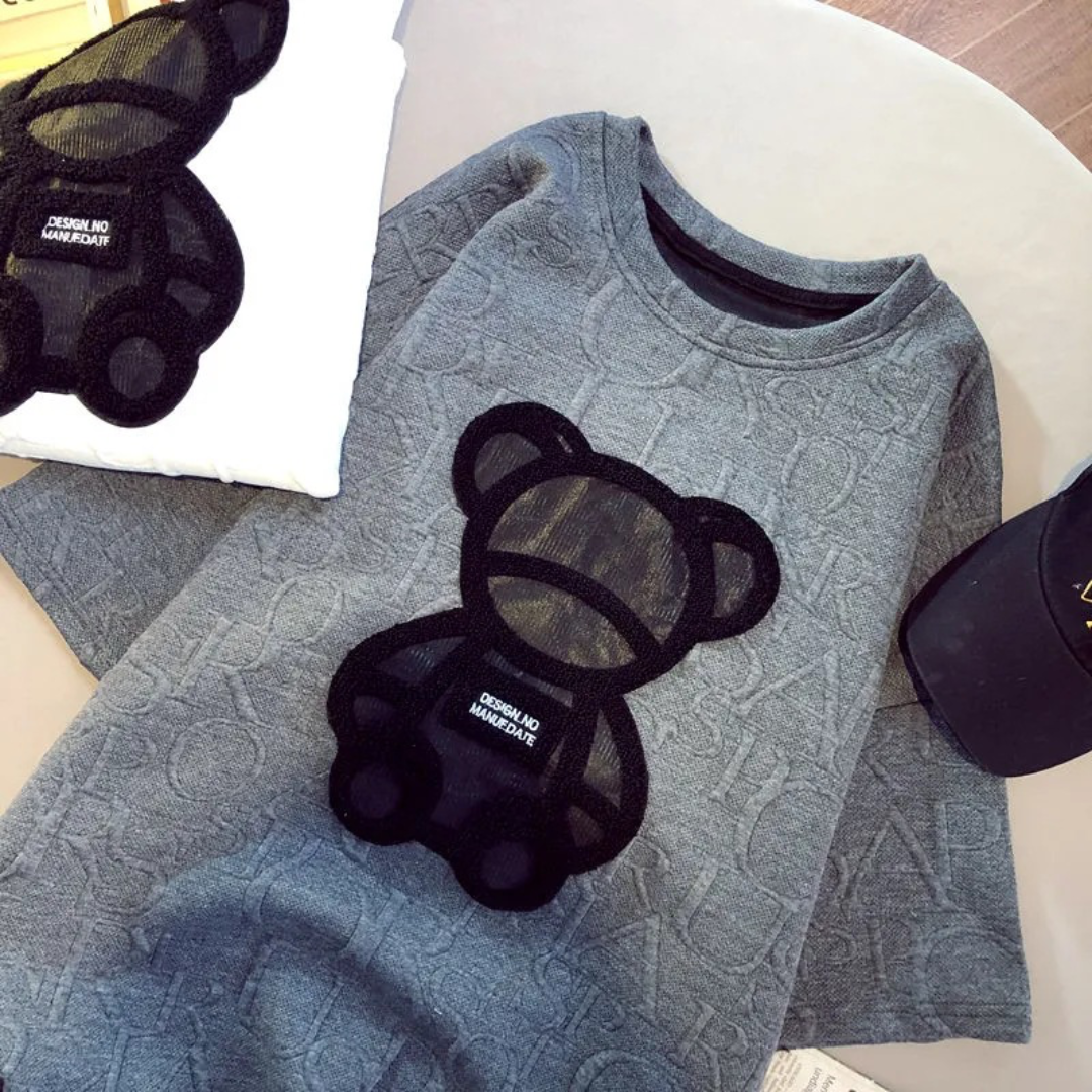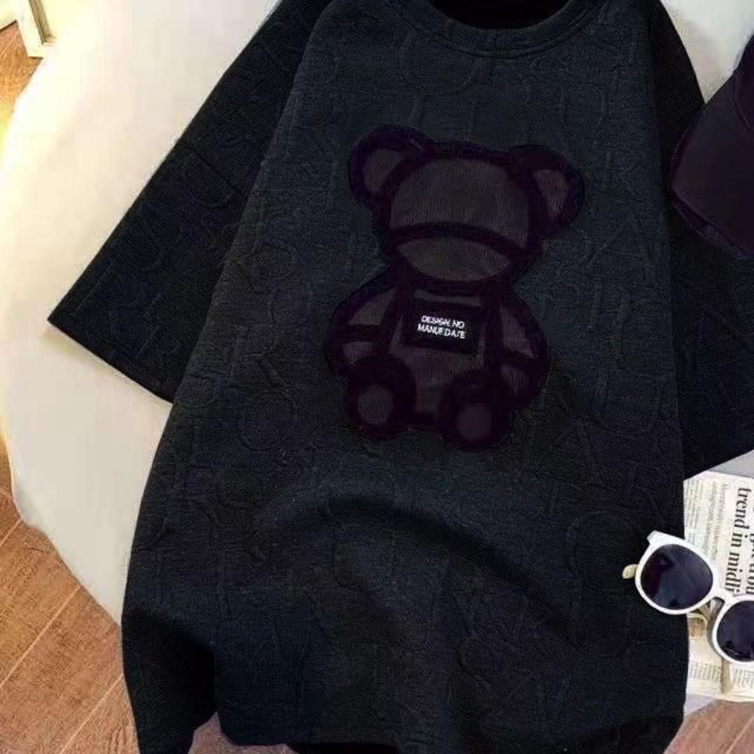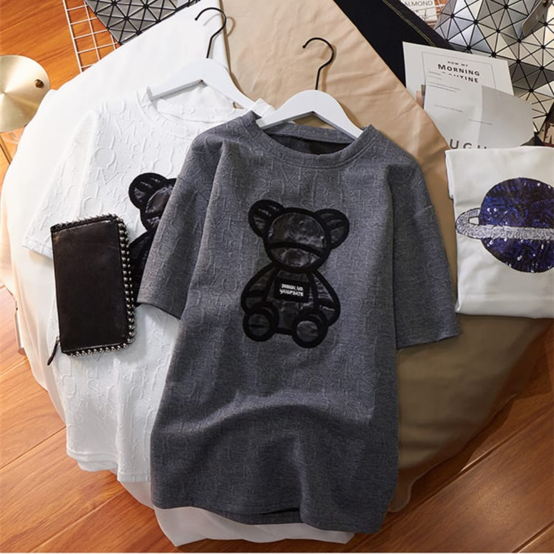 Harajuku Jacquard O-neck Short Sleeve Unisex Loose Summer Teddy Cotton Tops